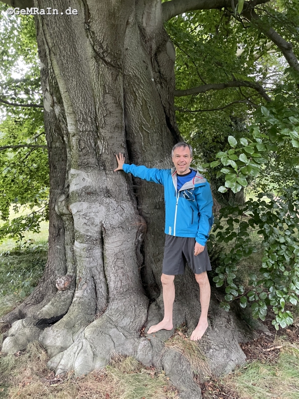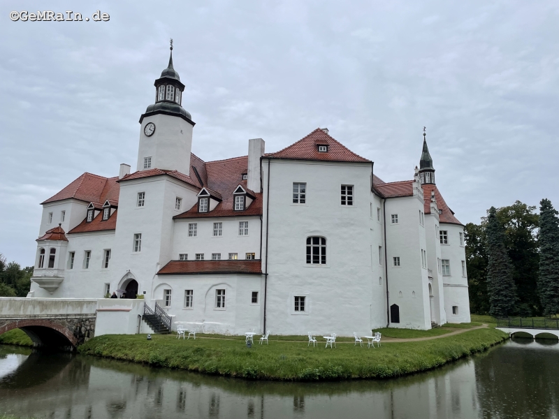 Am nächsten Tag schauten wir uns vormittags noch eine Ausstellung im Schloss Hartenfels an, (es ging hier um die Gefängnisse Brückenkopf und Fort Zinna in der NS Zeit und die DDR Zeit). Danach ging’s mit dem Auto über Luckau nach Fürstlich Drehna. Das ist ein Schlösschen, in dem aktuell ein Hotel untergebracht ist. Den Schlosspark haben wir gleich für einen barfuß Spaziergang genutzt. Der Nieselregen hat uns nicht davon angehalten.😊