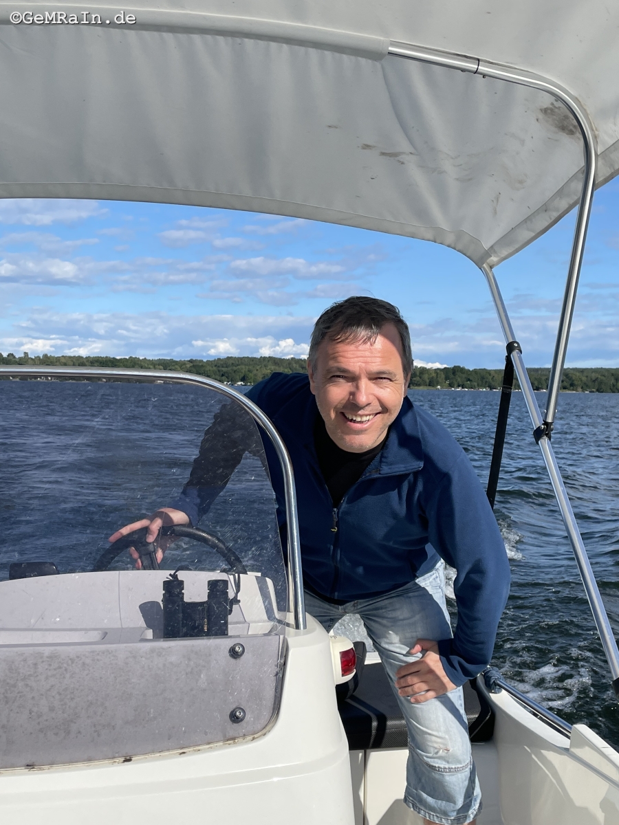 Pause vom Radeln! Nach einem ausführlichen Frühstück haben wir erstmal zu Fuß die hoteleigenen Bootssteg und einen in der Nähe befindlichen Badestrand begutachtet. Nach einer ausführlichen Sonnenbad -Pause auf Liegestühlen im Rosenhof sind wir dann doch in das 4km entfernte Plau am See geradelt und haben uns ein Motorboot gemietet. Ralf war auch auf dem Wasser 1a unterwegs und nach 2 Stunden See satt liefen wir wieder im Hafen ein. Aperitif mit Blick auf den Hafen und ab ging’s zum Abendessen. Danach wieder geradelt und glücklich ins Bett gefallen ☺️