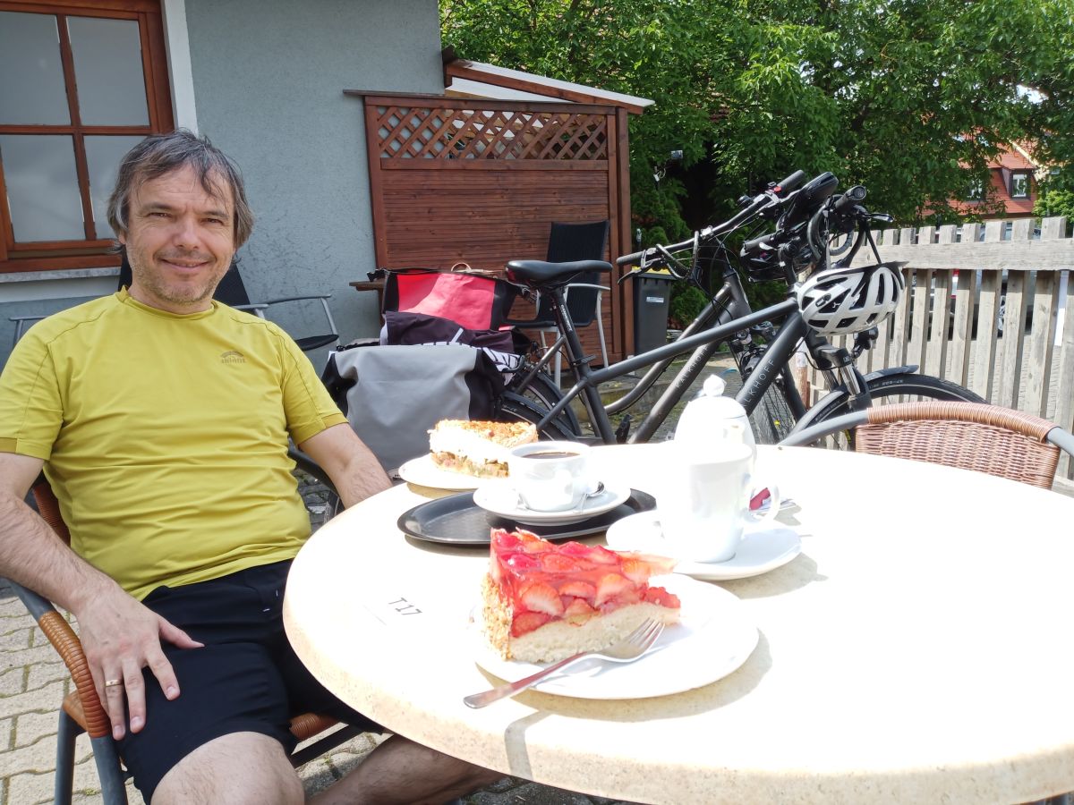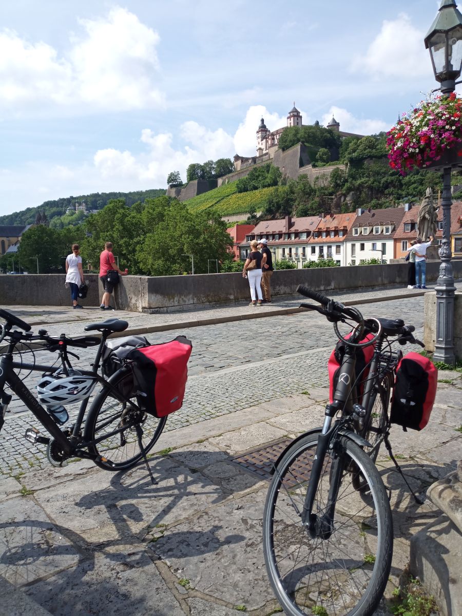 Hurra, blauer Himnmel, es kann losgehen über Würzburg nach Eibelstadt für einen Kaffeestop über Ochsenfurt nach Segnitz.