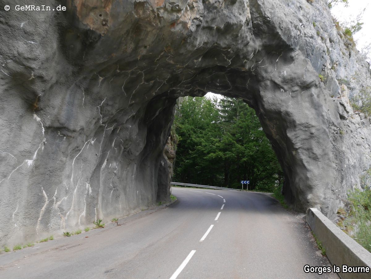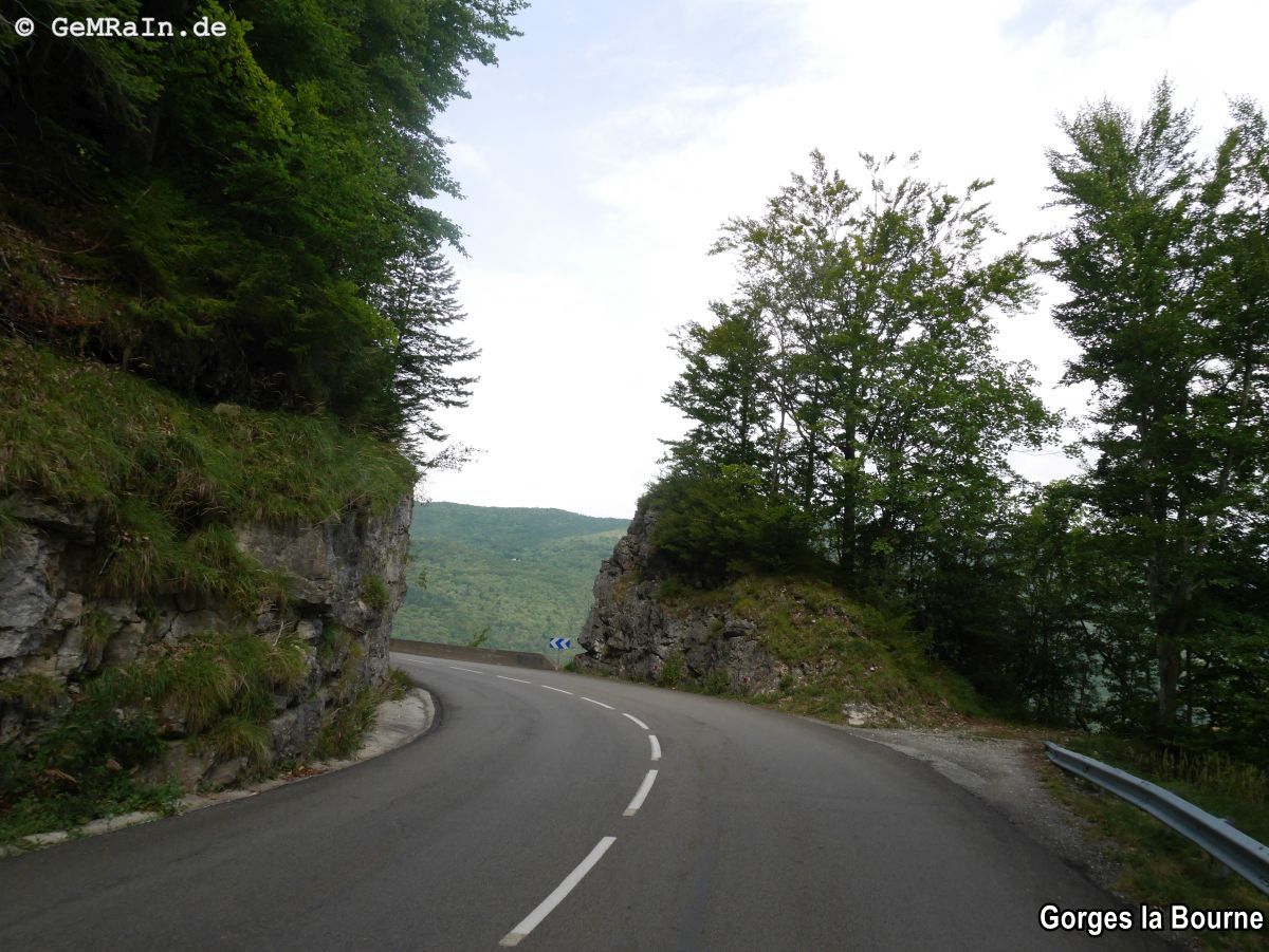 So wie der gestrige Tag aufgehört hat, so fing heute dieser Tag an. Jawohl, mit Kurven – und zwar mit einem echte Kracher mit dem Gorges de la Bourne. Rechts und links Felsenwände, mittendurch ein Flüsschen. Atemberaubend.