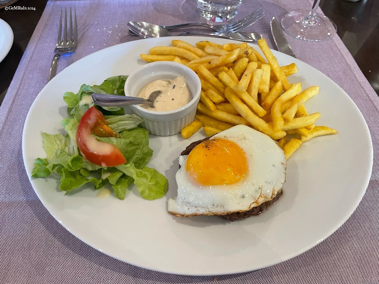 Welch ein Wunder! Die A8 war frei. Es gab keinen Regen und nach gut 3 Stunden sind wir auch schon in Frankreich angekommen. Die französischen Autobahnen kosten zwar Maut, sind aber stressfrei zu fahren. Nach gut 800 km sind wir im heutigen Übernachtungs-Ort Holnon angekommen. Abendessen mit Pastete und Pferdehacksteak war lecker, der Champagner durfte natürlich nicht fehlen!