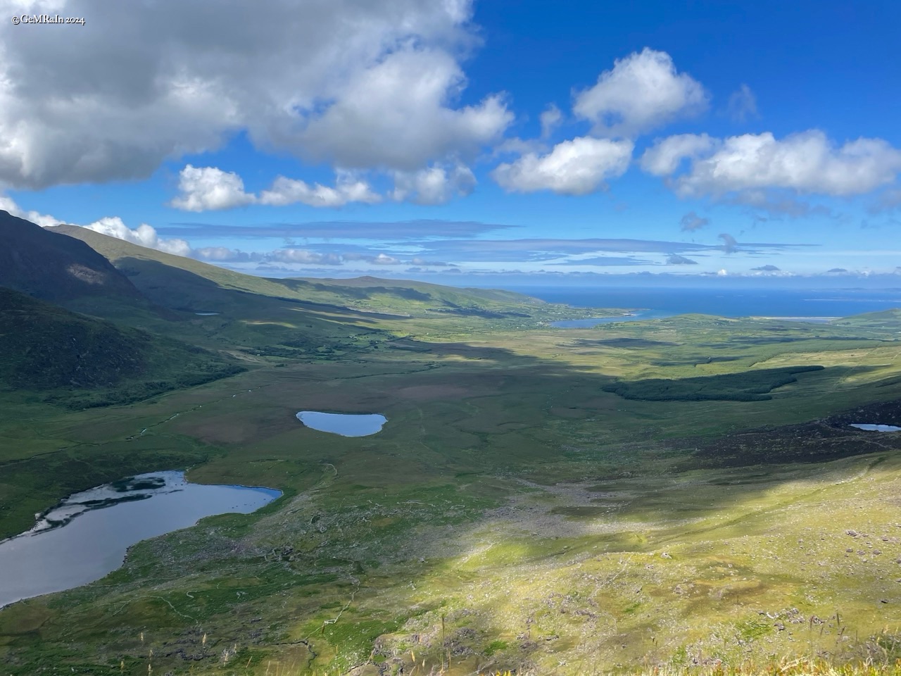 Nach vier Nächten in Glengarriff reisen wir weiter Richtung Norden. Erstmal durch den Nationalpark Killarney mit Ausblick auf Moore und kleinen Inselchen. Die Landschaft ist hier vielfältiger und bergiger, als wir das bisher von Irland kennen gelernt haben. Die Halbinsel Dingle wurde von uns heute einmal umrundet. Das Wetter war klasse, die Ausblicke waren herrlich, das Meer blau, der Himmel strahlend und das Grün so saftig, wie man es aus der Kerrygold Werbung kennt. Der höchste Punkt heute war bei 420 Meter auf dem Conor-Pass. Gegen 17:00 Uhr sind wir in unserer heutigen Unterkunft angekommen, noch schnell in den Supermarkt und ein Abendessen genossen. Ein herrlicher Tag!