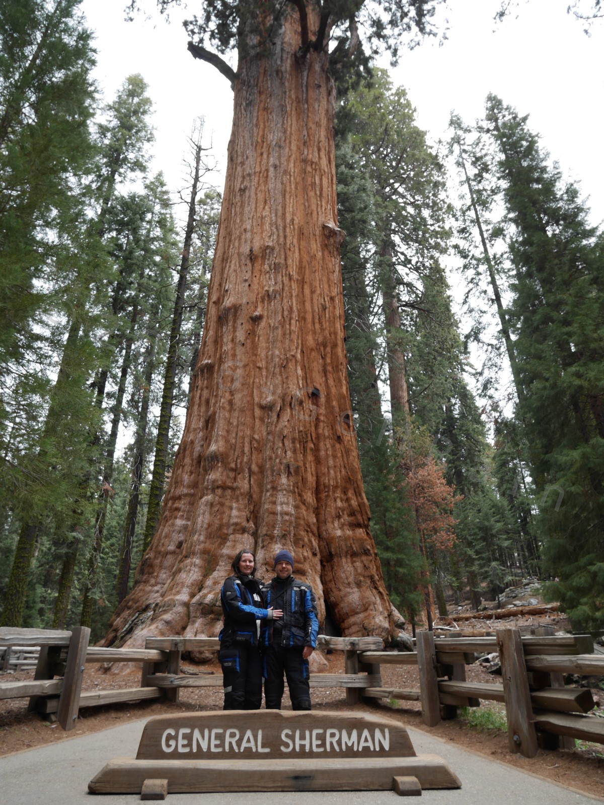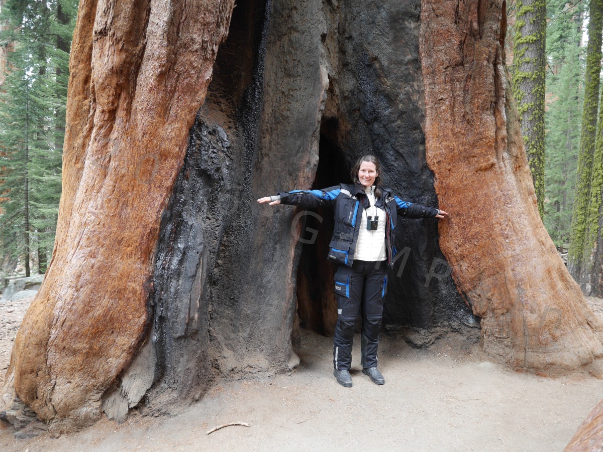 Nachdem wir uns gestern von unserer knapp 800 km langen Tagesreise und der Aufregung um das Motorrad erholt hatten, haben wir heute einen Tagesausflug in den Sequoia und Kings Canyon NP gemacht. Im Sequoia NP sind, wie der Name schon sagt, die Sequoia-Bäume mehrheitlich zu Hause. Diese Bäume können bis zu 95 Meter hoch werden. Die Rinde ist bis zu 79 cm dick! Man steht nahezu ehrfürchtig vor diesen Bäumen, es ist der Wahnsinn, was die Natur zustande bringt. @Papa aus Jägerwirth: Du hättest eine wahre Freude, diese “mords-trümmer” anzuschauen. Die Sequoias sind sehr resistent und können bis zu 3.200 Jahre alt werden. Die Rinde ist z.B. so beschaffen, dass ihnen ein Waldbrand, davon gibt es einige, nichts oder nur sehr wenig anhaben kann. Im Sequoia NP steht der größte Baum auf Erden, der “General Shermann Tree”. Es gibt höhere, dickere und ältere, aber dieser Baum ist der größte bezogen auf die Masse. Weiter ging es dann in den Kings Canyon NP, auch dort gibt es jede Menge Sequoia-Bäume, aber auch die ebenfalls gigantisch großen Redwood-Bäume. Diese können bis 112 Meter hoch und bis zu 2.000 Jahre alt werden. Die Redwood-Rinde wird bis zu 30 cm dick. Auch diese Baumriesen sind fantastisch anzuschauen. Wir freuen uns schon, wenn wir deren Heimat in Nordkalifornien in ca. 3 Wochen besuchen. Im Kings Canyon NP gab es z.B. einen “toten” Sequoia-Baum durch den man hindurchgehen konnte. Auch hier findet man keine Worte, dies zu beschreiben. Beide Baumriesen-Arten wachsen auf einer Höhe zwischen 1.800 und 2.400 Meter. Auf dem Heimweg wurde dieser tief beeindruckende Tag noch getoppt, als eine Wildschein-Großfamilie (mindestens 10 Tiere) mit Baby-Wildschweinen vor uns über die Straße lief! Leider ging das alles viel zu schnell um das auf ein Foto festzuhalten.