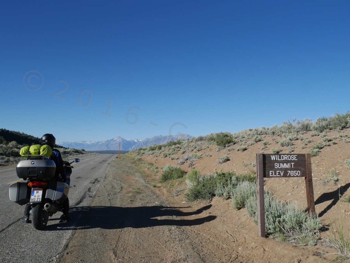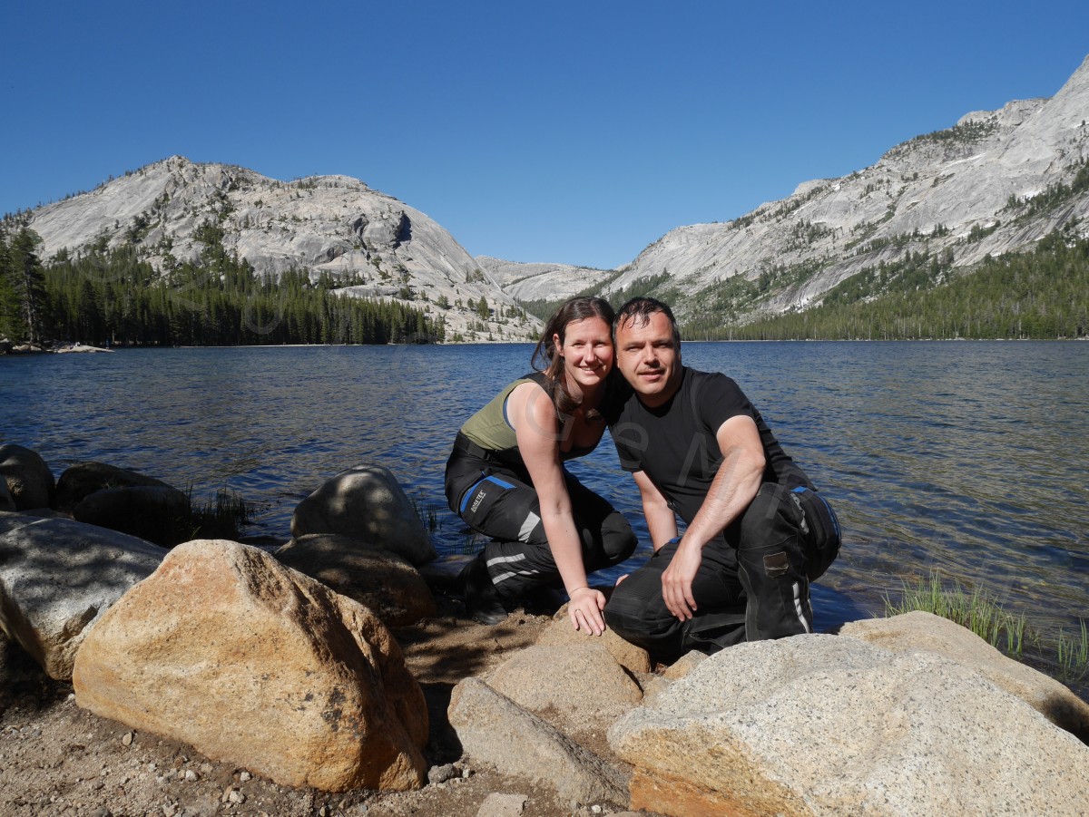 23.06.: Der zweite ungeplante Boxenstopp stand an. Nachdem unser Motorrad die letzten beiden Tage bei der geringsten Anstrengung bei 37 Grad (Stadtverkehr und schnittige Fahrt in den Bergen) immer eine Überhitzung angezeigt hat, haben wir uns entschlossen vor unserer Fahrt durch die Wüste nach Ely das Motorrad in der Werkstatt durchchecken zu lassen. Ein Umweg über Modesto war erforderlich. Die Mechaniker haben den Kühlkreislauf gecheckt und neu befüllt. Dadurch musste unser schön geplanter Tag im Yosemite Nationalpark zeitlich schrumpfen und wir fuhren auf dem Highway 120 durch den Park und über den höchsten kalifornischen Pass (Tioga mit 3.031 m) zum Mono Lake und weiter zu unserer Übernachtung in Mammoth Lakes. Die Fahrt war atemberaubend schön. Viel frisches Grün, viel Wasser und im Hintergrund die schneebedeckten Berge der Sierra Nevada.