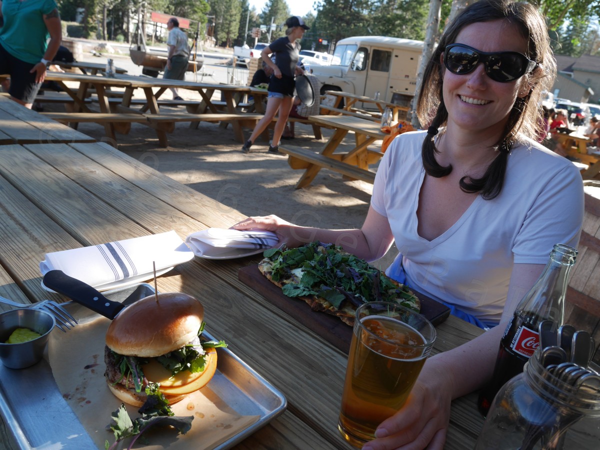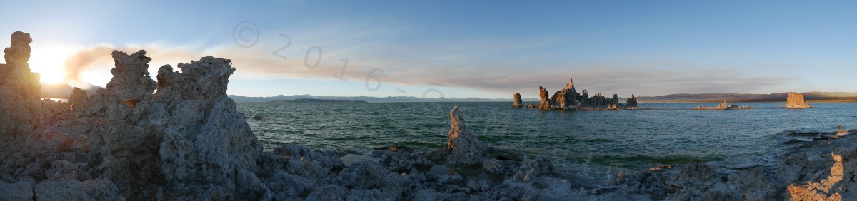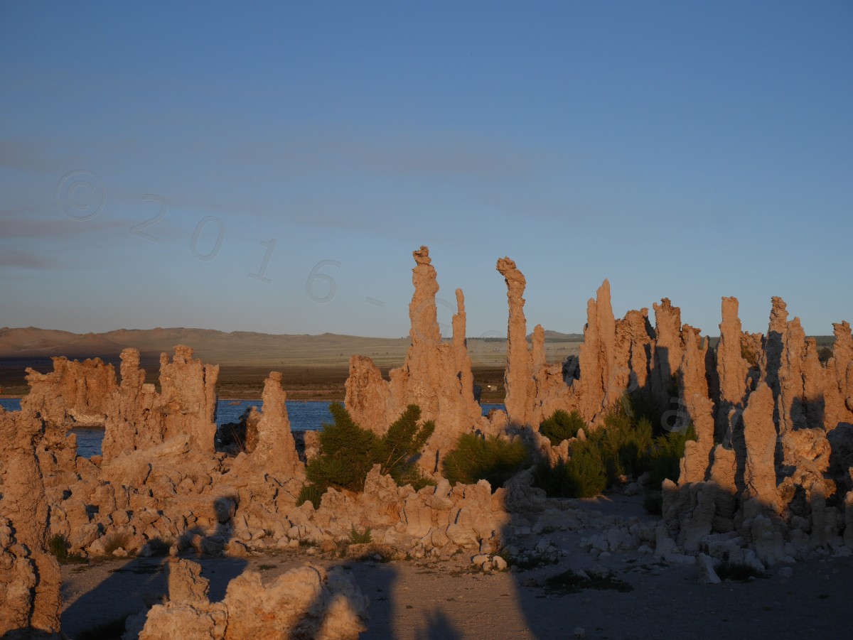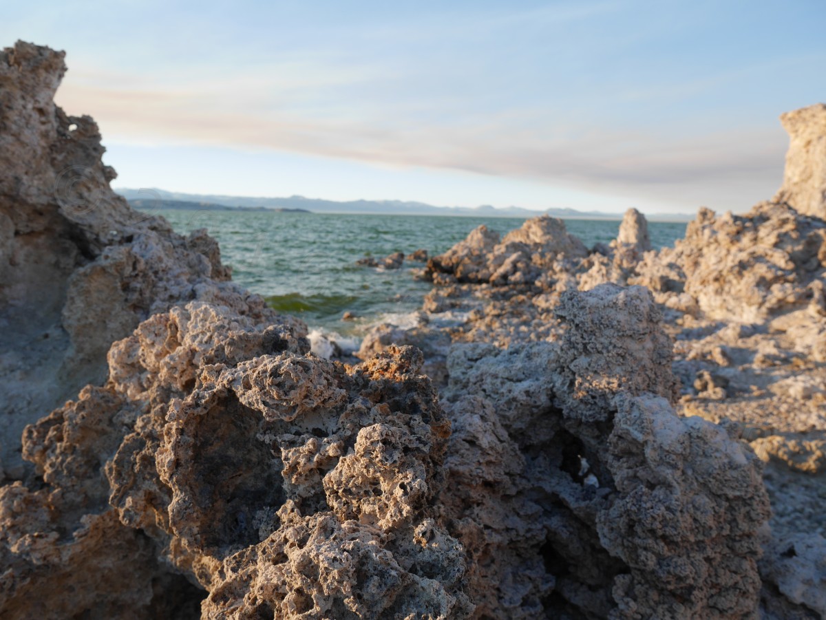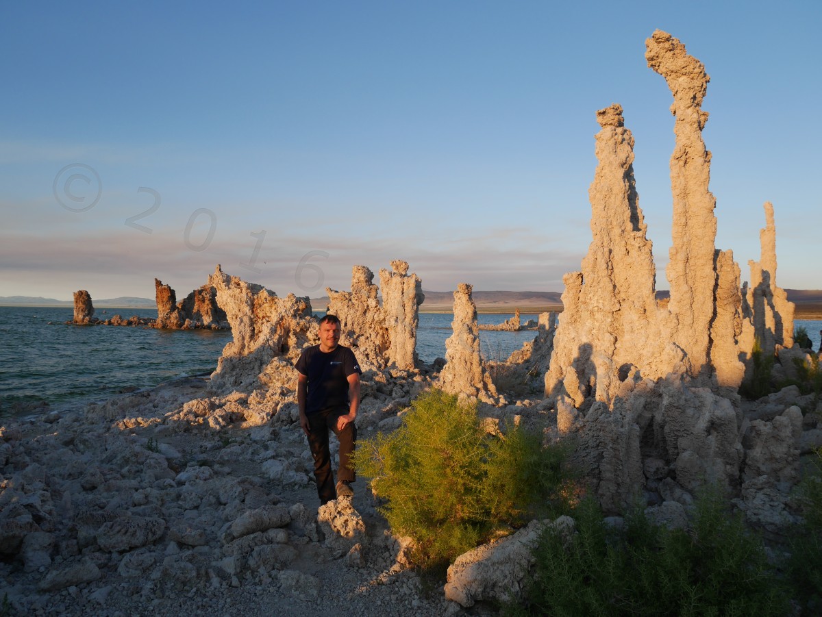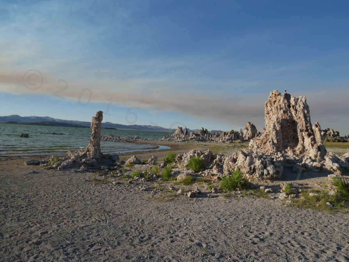 24.06.: Unser Ausflug am heutigen Tag ging zum Devils Postpile National Monument. Der Kern dieses Schutzgebiets stellt ein Kliff aus regelmäßigen Basalt-Säulen dar, diese Gesteinsformationen kommen äußerst selten vor und entstanden aus erkalteter Lava vor ca. 80.000 – 100.000 Jahren. Anschließend haben wir uns in Mammoth Lakes in der lokalen Brauerei “Mammoth Brewing Company” im Biergarten mit Burger und Bier gestärkt. Pünktlich zum Sonnenuntergang fuhren wir die 20 Meilen nördlich zum Mono Lake. Wir hatten Glück, dass wir die Zufahrt zum Mono Lake noch befahren konnten, da die Straße danach aufgrund eines Waldbrandes gesperrt war. Der Mono Lake ist ein alkalischer Salzsee, er gilt als einer der ältesten Seen der Welt. Fische können hier nicht leben, dafür Unmengen von Salzfliegen.