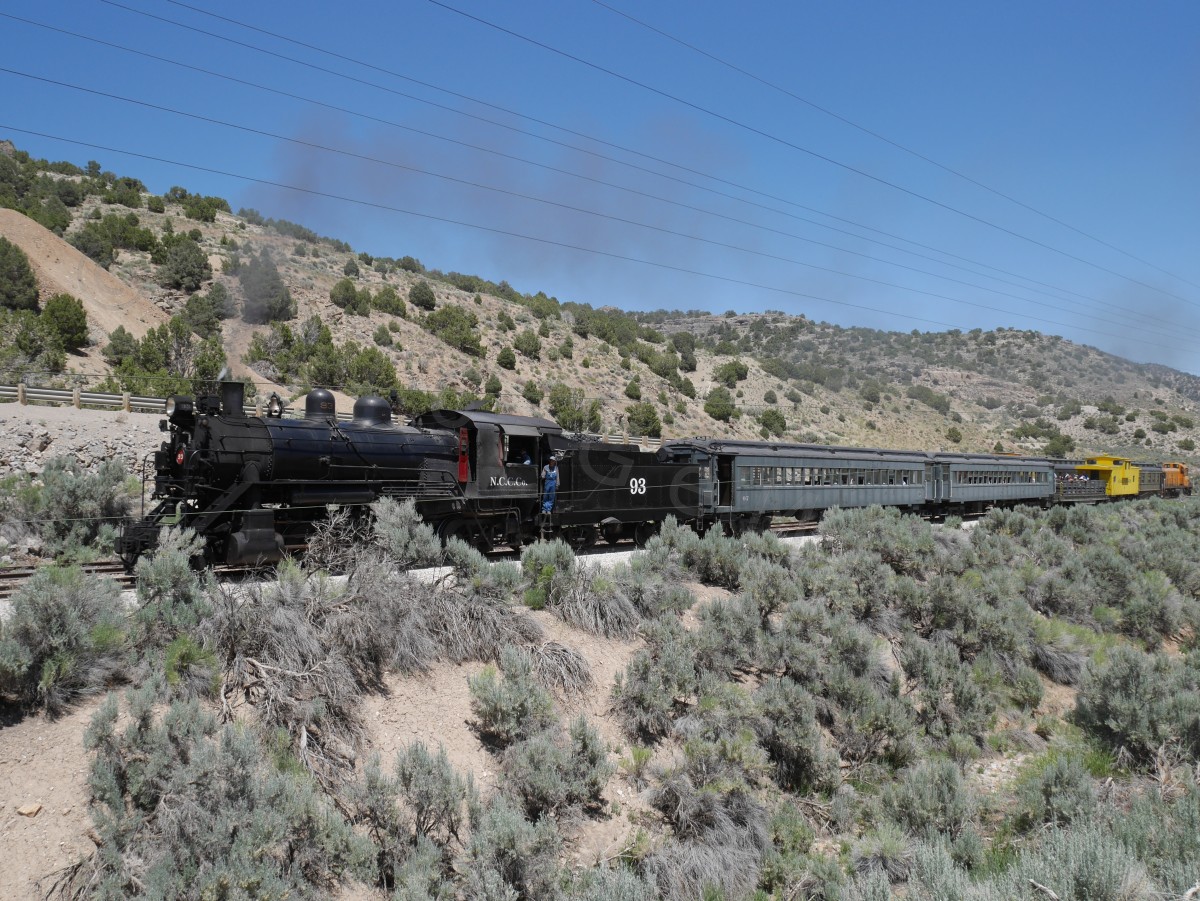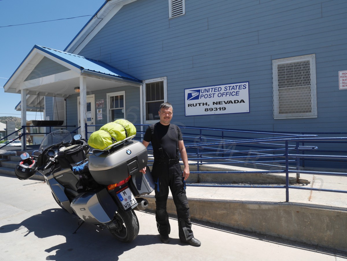 25.06.: Heute verlassen wir nach fünf Wochen Kalifornien. Die Fahrt nach Ely hat sich zu Beginn als ein wahrer Foto-Fundort rausgestellt. Ob es nun um die schneebedeckten Bergketten der Sierra Nevada ging oder um (vermutlich) Wildrosen direkt am Straßenrand. Nach knapp 100 km erreichen wir Nevada und fuhren den Highway 6 weiter ostwärts. Da wir heute früh bereits ab 7 Uhr auf der Straße waren, konnten wir die größte Hitze für die 500 km lange Strecke umgehen und sind gegen 13 Uhr in Ely angekommen. Einen kleinen Abstecher zum Dörfchen Ruth haben wir noch gemacht. Das war natürlich ein Muss, weil Ralfs Schwester Ruth somit quasi verewigt wurde. Ruth wurde 1903 als Bergwerksstadt gegründet. 1999 wurde der Abbau von Kupfer eingestellt und auch die Eisenbahn verkehrt seitdem nicht mehr, diese dient heute lediglich noch als Museumsbahn zwischen Ruth und Ely.