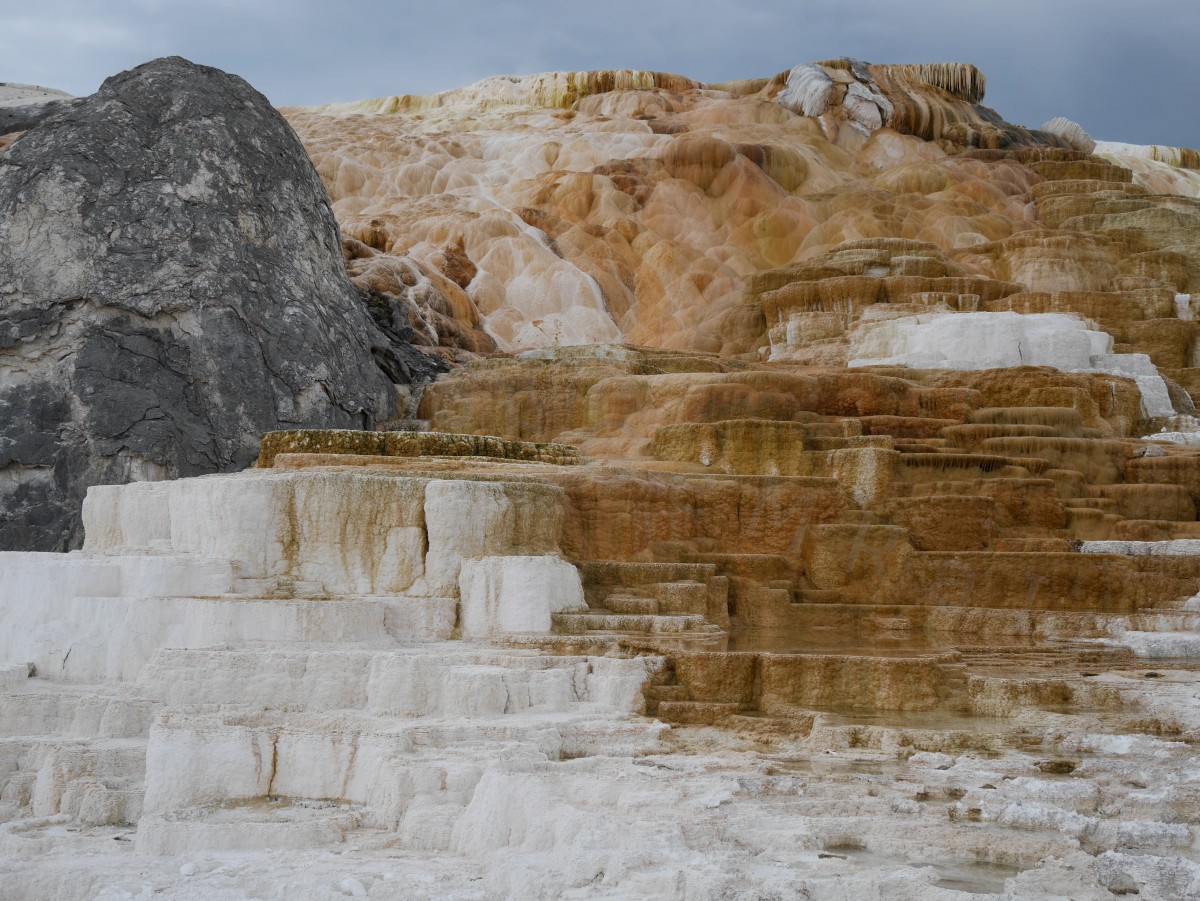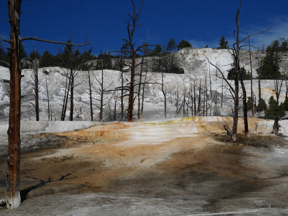 15.07.: Besichtigung Mammoth Hot Springs: Unseren Hausberg sparten wir uns bis zum Schluss auf. Im Yellowstone NP bieten Ranger kostenlose Touren an. Für die Besichtigung der Mammoth Hot Springs haben wir uns für eine geführte Tour mit dem Ranger Morgan entschieden. Es war interessant zu erfahren, wie diese heißen Quellen zustande kommen, welche Voraussetzungen gegeben sein müssen und wie schnell sich diese Landschaft verändert. Damit befindet sich laut Morgan die jüngste Gesteinsformation, geformt durch die Mammoth Hot Springs in unmittelbarer Nähe der ältesten Gesteinsformation der Erde, den Beartooth Mountains. Der Abschied fällt uns schwer, morgen geht es weiter.