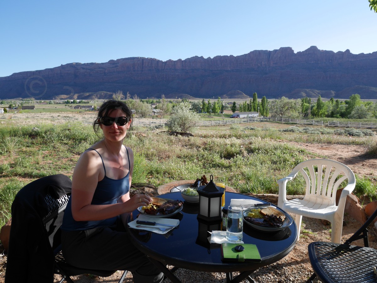 Die Selbstversorgung war immer super. Im Zweifelsfall einfach ein Steak auf den Grill, wenn wir denn einen Grill hatten. Endlich mal kein Fast Food und endlich mal richtiges Gemüse und guten Salat. Ein Wein oder Bier, bevorzugt “local” zum Abendessen durfte nicht fehlen.