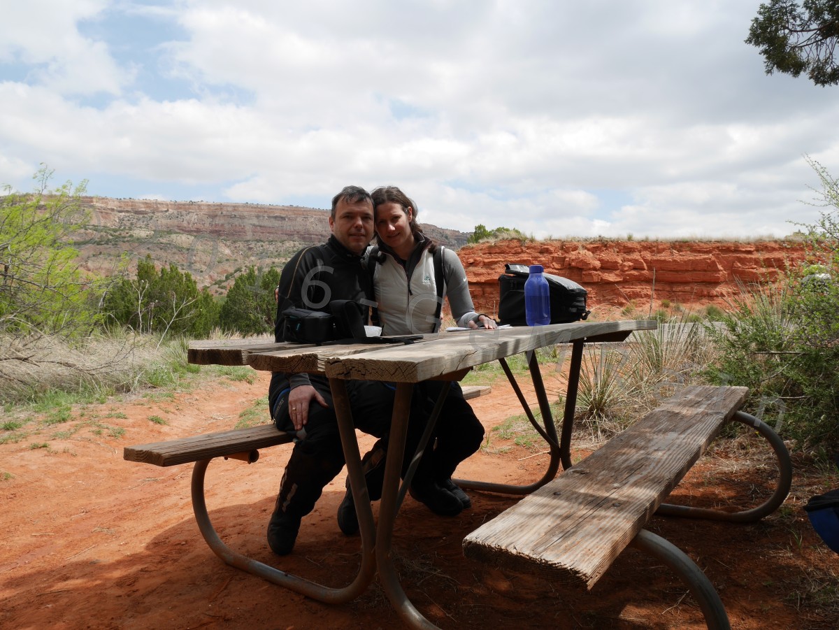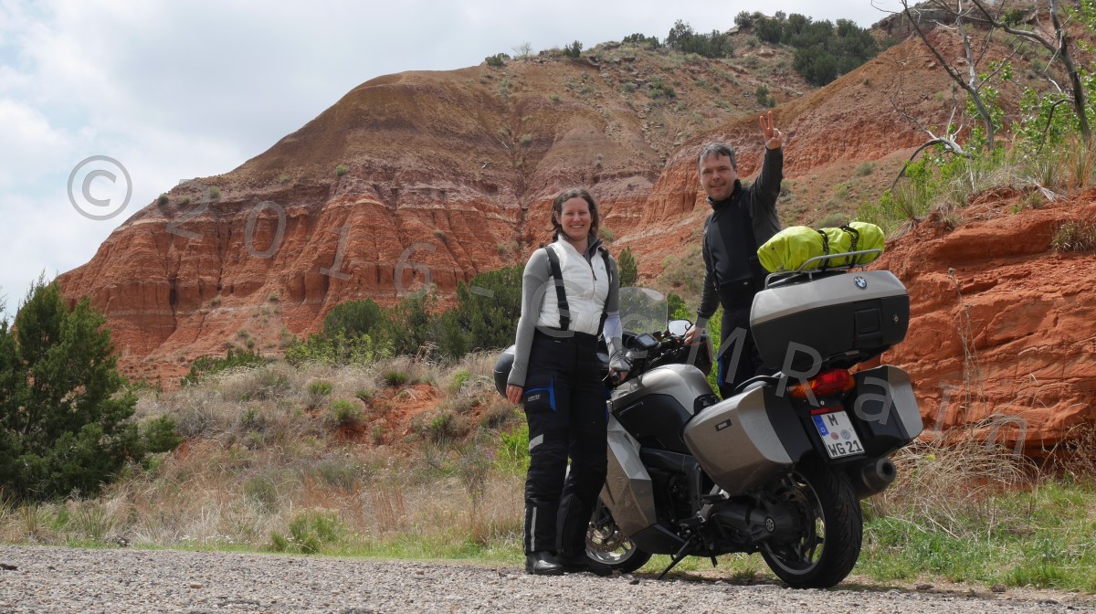 Auf der Fahrt nach Amarillo in Texas haben wir einen Abstecher in den Palo Duro Canyon gemacht. Da das unser erster amerikanischer Canyon ist, haben wir jede Menge Fotos geschossen. Zudem hatten wir unsere erste Begegnung mit einer lebendigen (!) Klapperschlange. Gott sei Dank hatte Ralf bereits Übung in Ausweichmanövern gehabt (Stichwort: Schlaglöcher auf Highways), dadurch konnten wie der Klapperschlange ebenfalls leicht ausweichen. Morgen (16.4.) legen wir einen Ruhetag in Amarillo ein und fahren dann am Sonntag weiter nach Pojoaque (Nähe SantaFe). Wir freuen uns drauf!