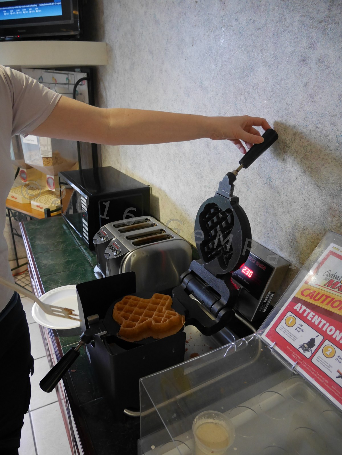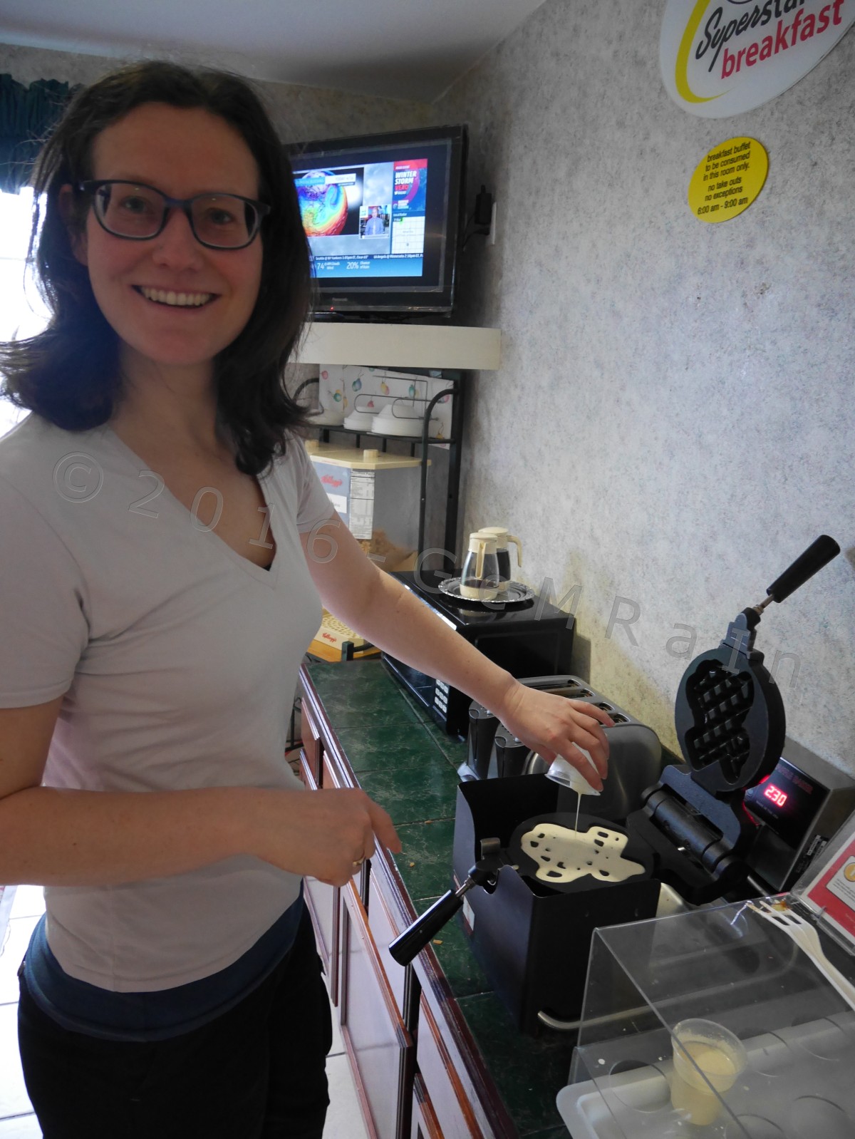 Die Nächte verbrachten wir auf unseren ersten Reisetagen in Super 8 Motels. Beim Einchecken freut sich Ines bereits auf die am nächsten Tag zum Frühstück frisch zubereiteten Waffeln mit jeder Menge Ahornsirup.