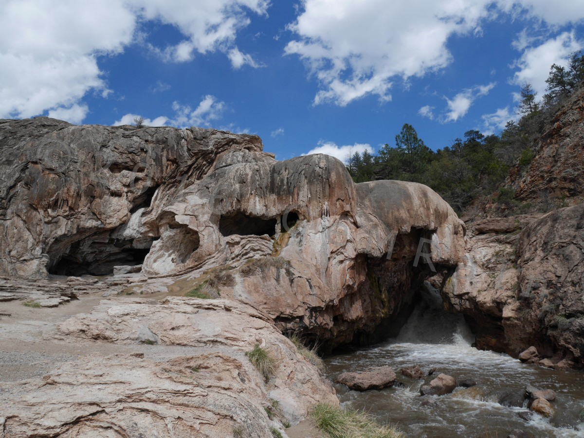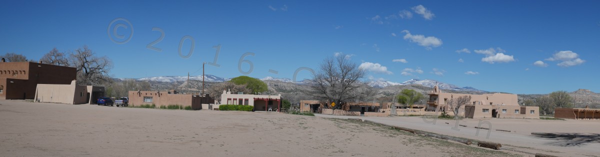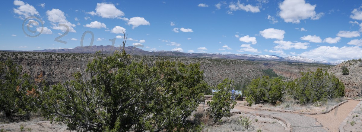 Ausflug 3 (20.4.): San Ildefonso, Bandelier National Monument, Los Alamos,: Den Tag starteten wir mit einer weiteren Besichtigung eines Pueblos, in dem Indianer leben (San Ildefonso). Wir waren vom Preis-Leistungsverhältnis etwas enttäuscht. Aber wir haben schöne Fotos machen können, das ist ja schon mal was. Weiter ging es dann in das Bandelier National Monument. Wir durften hier kostenlos reinfahren, da es aktuell eine Aktionswoche in den USA gibt, bei denen alle National-Parks und National-Monumente kostenlos zu besichtigen sind. Das Wetter, der Ausblick, die malerischen Berge – einfach unbeschreiblich! Da wir unsere Motorrad-Klamotten anhatten, konnten wir hier keine Wanderung unternehmen (für Ralf zu heiß). Unser nächster Stop sollte Los Alamos sein. Gut dass Ines heute früh noch gegoogelt hat was wir eigentlich in Los Alamos anschauen könnten. Lt. Google ist rund um Los Alamos noch relativ viel militärisches Sperrgebiet. Deshalb waren wir nur wenig überrascht, als wir an einen Checkpoint kamen und wir unsere Pässe vorzeigen mussten. In Los Alamos konnte man nicht wirklich viel sehen, mit Ausnahme der großen Forschungsgebäude.